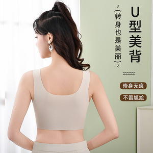 夏季冰丝无痕女士背心式文胸无钢圈瑜伽透气睡眠女生胸罩无感大码