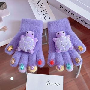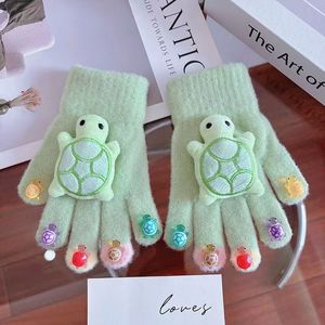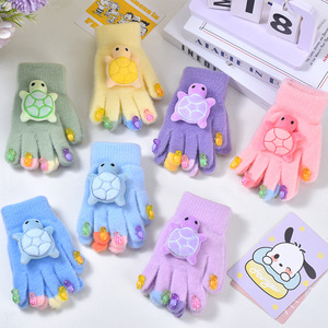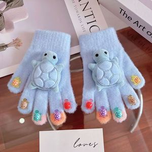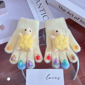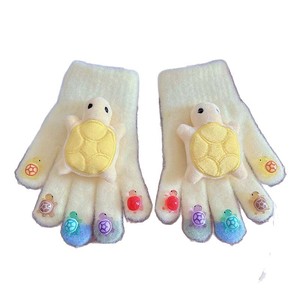 子供用 4-12 歳の小さなカメの手袋インターネットセレブ人気のかわいい漫画の 5 本指の女子学生が冬を暖かく保ち、寒さから守ります