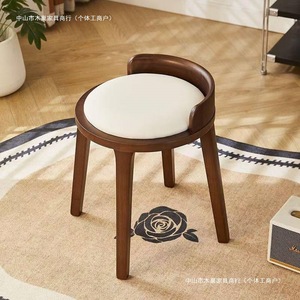 中世スタイルのドレッシングチェア無垢材の化粧椅子女の子の寝室のドレッシングテーブル背もたれ椅子ココアチェアライト高級レトロスツール
