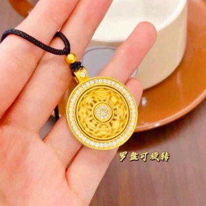 金店同款镶钻八宝罗盘可旋转吊坠仿越南沙金圆盘镂空挂坠项链批发