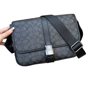 C家奥莱新款league 29男士真皮斜挎包蔻家经典老花单肩翻盖邮差包