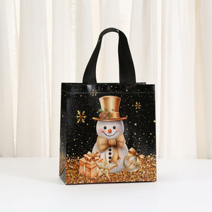 クリスマス用黒色収納不織布ハンドバッグ、ショッピングモール、ホームテキスタイル、ショッピング、誕生日用包装袋、防水加工