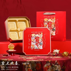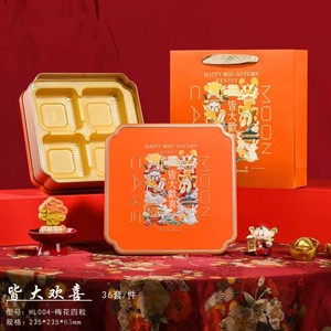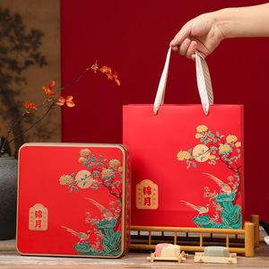 中秋節ギフトボックス正方形月餅ブリキ箱 4 個ブリキ箱ドリアン 5 ナッツ月餅箱カスタムロゴ