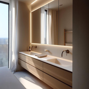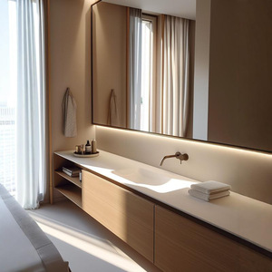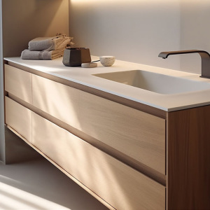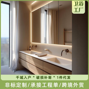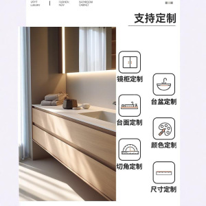 原木色浴室柜组合日式简约卫生间岩板洗漱台洗脸台岩板热弯一体盆