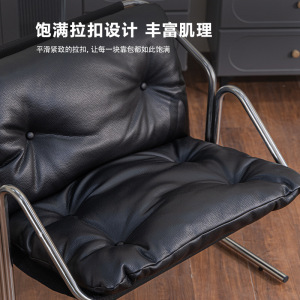 イタリアのライト高級レザーソフトパッケージダイニングチェアステンレス鋼会議室椅子フレンチレトロビジネス交渉椅子ブックチェア