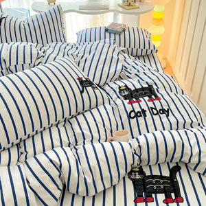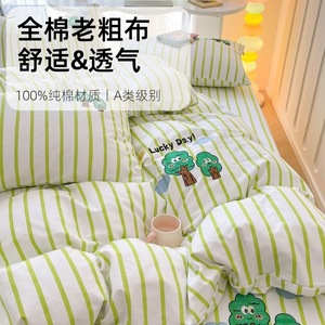 纯棉老粗布床上四件套2025新款A类全棉麻被套床笠三件套南通床品