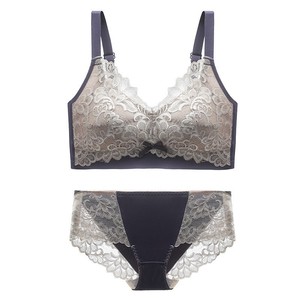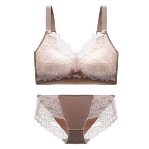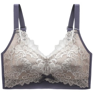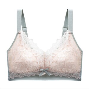 大きいサイズの調節可能な女性用下着、レース、ノンワイヤー、コントラストカラーのラテックス、軽量のたるみ防止ブラジャー、フルカップセット