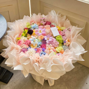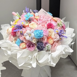 [夢が花に落ちる] 52種類の花を組み合わせてバケツに詰めます