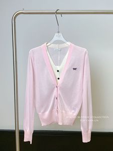 【クリアランス返品交換不可】Thirteen Lines Spring Mシリーズ 年齢軽減Vネック フェイクツーピース カラーブロック 刺繍レターニットセーター レディース