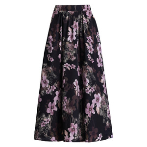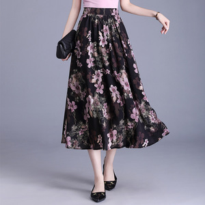 2025 新しい夏のプリントプリーツスカートハイウエストスリムミッドレングスドレープ A ラインスカートカジュアルアンブレラスカート