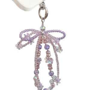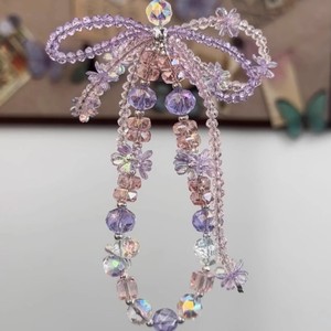 甘いスモーキーアメジストビーズリボン携帯電話吊りチェーン手首ショートストラップキーホルダーバッグペンダント