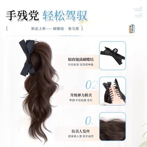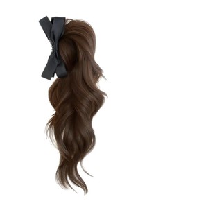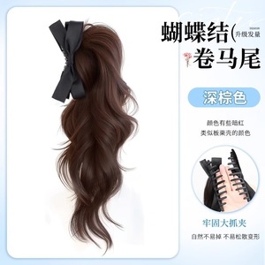 女性用ポニーテールウィッグ、自然な模擬リボンクリップ、巻き毛ポニーテール、ふわふわ、髪のボリュームアップ、頭頂部ウィッグ、編み込みポニーテール