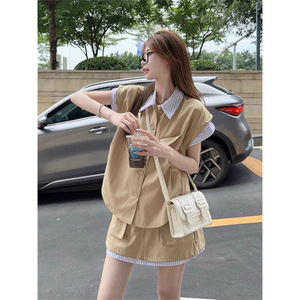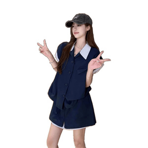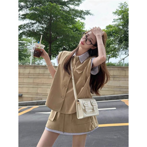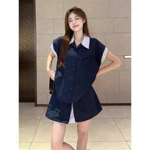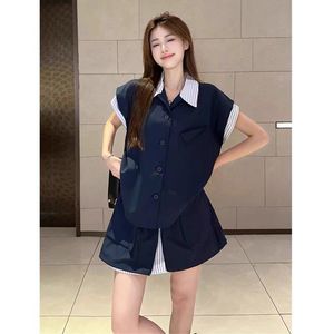 女子学生向けスポーツスーツ、韓国風ゆったりおしゃれ、フェイクツーピース半袖スカート、カジュアルツーピーストレンドスーツ