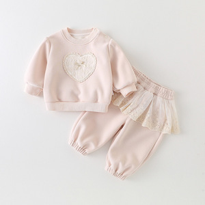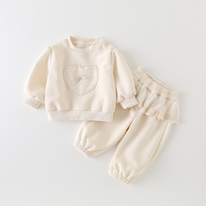 婴幼儿宝宝卫衣套装2025秋装婴儿衣服单层分体女童爱心外出服 a类