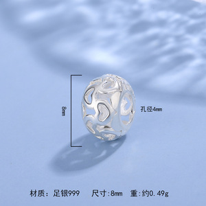 純銀 999 楕円形水玉模様中空貫通穴パターンビーズジュエリーアクセサリー DIY ハンドロープブレスレットスペーサービーズ