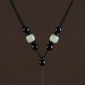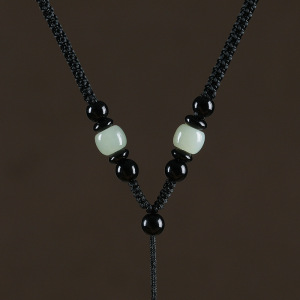 手織り翡翠黒曜石ネックレスロープペンダントロープ安全バックル翡翠ペンダントストラップ翡翠ペンダント仏ロープ