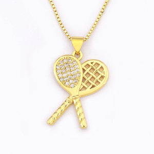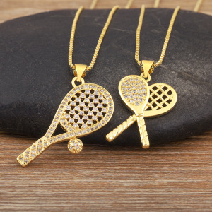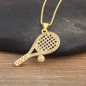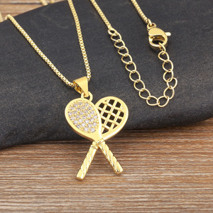 銅メッキ 18K リアルゴールドマイクロ象嵌ジルコンラケットバドミントンラケットシャベル幾何学的な新しいコレクション外国貿易ネックレス