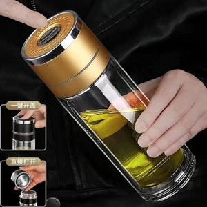 450ML土豪金【一键开盖】一键开盖/可车载/双层加厚/茶水分离★
