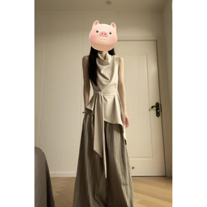 高级感气质收腰不规则无袖背心上衣套装女夏季高腰显瘦休闲阔腿裤