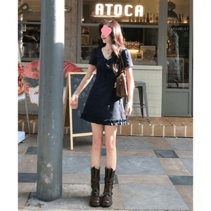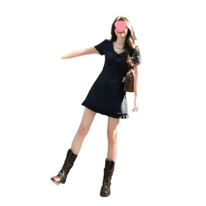 2025 新しい夏のスタイルフレンチスタイルレース半袖 V ネックドレス女性のウエスト痩身多用途スカート