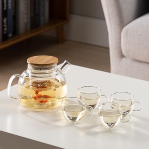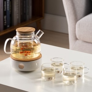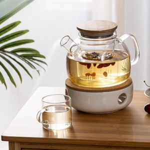 日本製耐熱フラワーティーポットフラワーティーカップアフタヌーンガラスティーセットカンフーフルーツティーポットセットキャンドル加熱と断熱