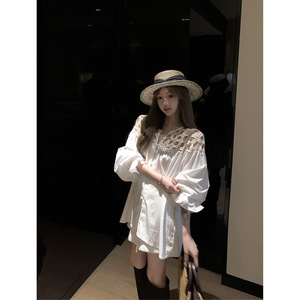 2025夏季新款法式气质风重工肩部镂空泡泡袖百搭长袖衬衣上衣女潮