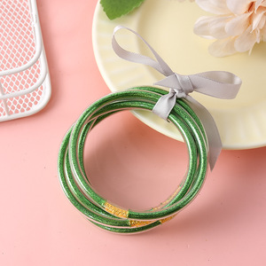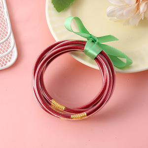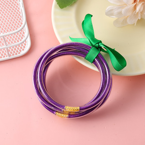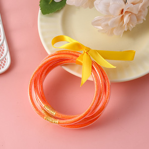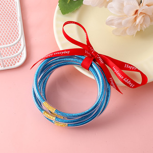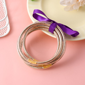 Amazon クロスボーダーシリコーンゴールドパウダーブレスレット女性のための新しい手作りリボンリボンカップル PVC ブレスレット女性のための