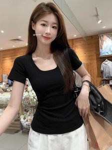 U领修身短袖女2025夏季新款韩系T恤白色正肩打底衫外贸女装上衣