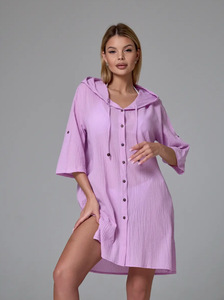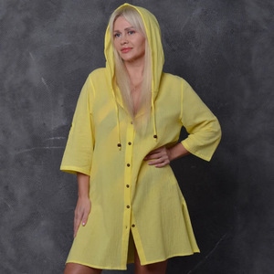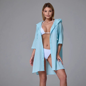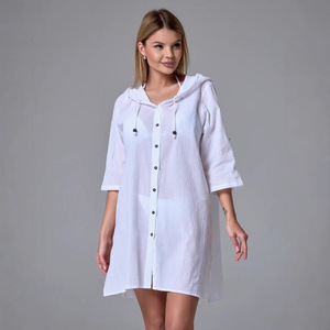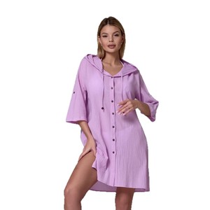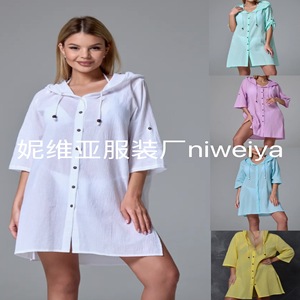 国境を越えた熱い販売ヨーロッパとアメリカの女性の竹綿カジュアル半袖フード付きシャツファッションボタンカーディガンビーチアウター