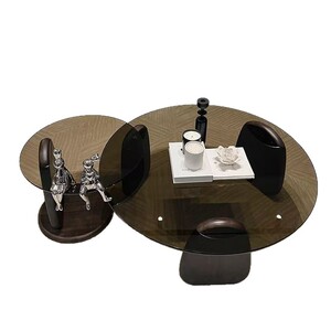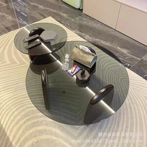 ラウンドコーヒーテーブルリビングルームホーム小さなアパートライト高級モダンなティーテーブルシンプルでクリエイティブな強化ガラスコーヒーテーブルテーブルの組み合わせ