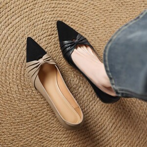 女性用フレンチポインテッドトゥシューズ、春と秋の新作ブラック浅口ソフトシープスキンスティレットハイヒールミッドヒール通勤作業靴