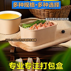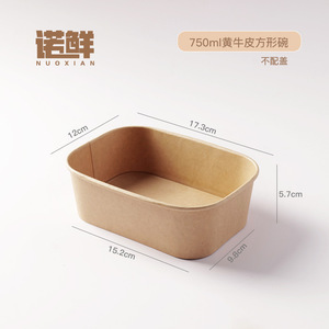 一次性餐盒牛皮纸长方形外卖快餐打包盒野餐饭盒环保便当沙拉盒