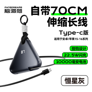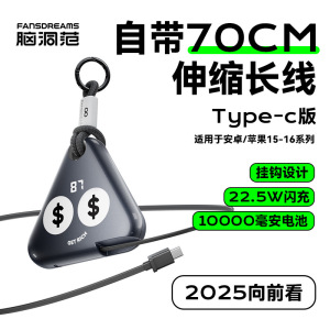 【国家3C安全認証】Brain Van 2025 ロールテープ伸縮コードパワーバンクには10000mAhのケーブルが付属しています