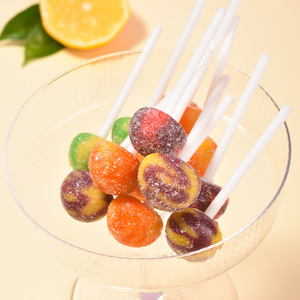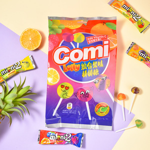 レインボーキャンディの芯にはさまざまな味が隠されており、COMI総合フルーツ味ロリポップのファンタスティックな味わいの旅
