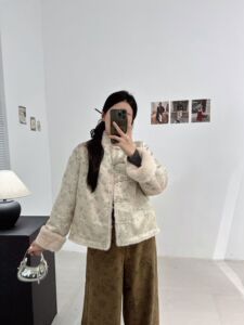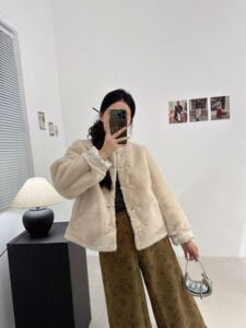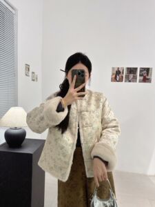 卸売ドロップシッピング新しい中国風の毛皮のコート、国民的トレンド、国民風模造毛ジャカードサテン、リバーシブルレディース環境に優しい毛皮