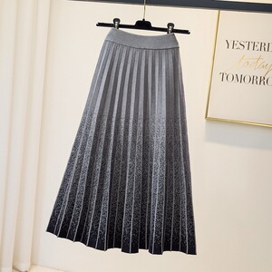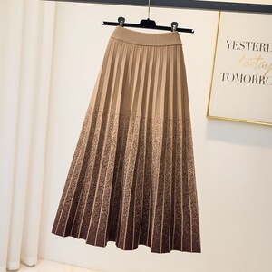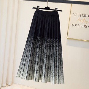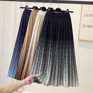 小众设计感晕染渐变针织半身裙女显瘦遮胯a字裙秋冬中长款百褶裙