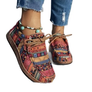 在庫あり 外貿 大きいサイズ エスニック風 レースアップシューズ レディース ローカット カラフル グラフィティ キャンバス フラットシューズ 越境人気商品
