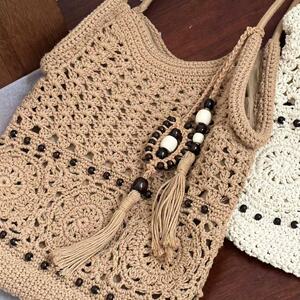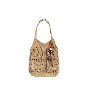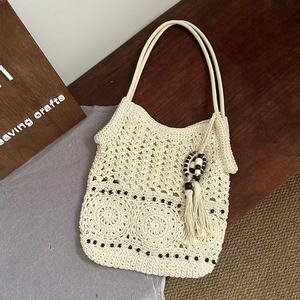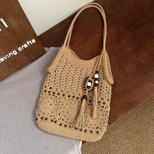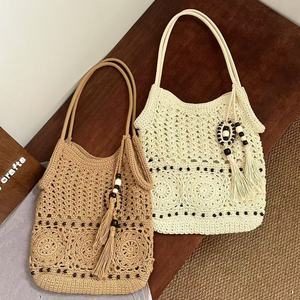 2025 新ファッション綿ロープ織りタッセルビーズトレンディなショルダーバッグ森萌中空休暇ビーチ脇の下バッグ