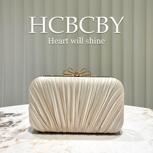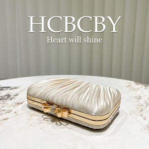 香槟色优雅百褶时尚盒型晚宴包 女士复古手提包礼服旗袍新娘包