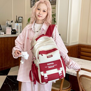和風の大容量リュックサック、小学生・中学生向け、女子向け、通学用、負担軽減、脊椎保護、配色リュック、カジュアルでシンプル