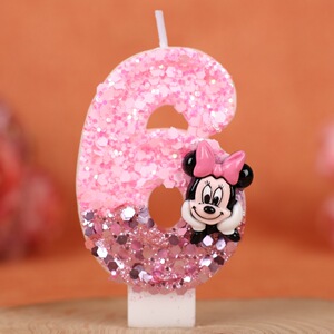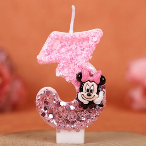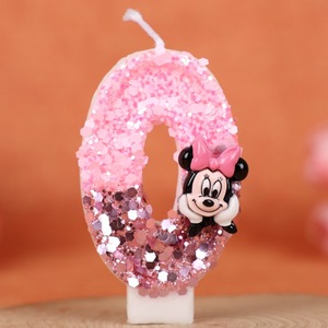 国境を越えた漫画ミニーの誕生日ケーキ誕生日パーティーお祝いピンク手作りデジタルスパンコールキャンドル 0-9