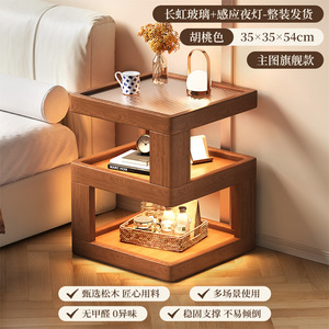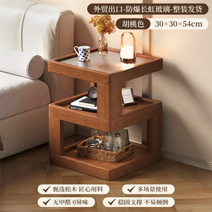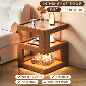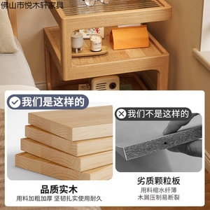 实木奶油风床边柜现代简约创意ins风床头柜小型超窄轻奢高级感