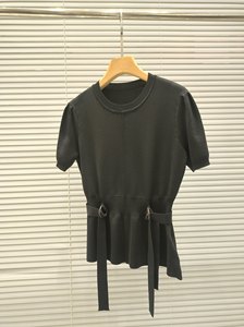 2025年新作夏スタイル、ウエストに紐が付いており、ウエストを細くし、スリムでファッショナブルで多用途なラウンドネックショートニットTシャツトップ
