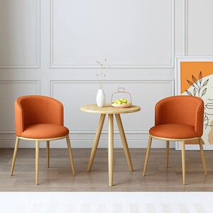茶色とオレンジ色のテーブルと椅子 2 脚
