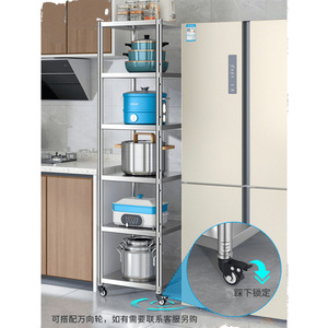 キッチンラック隙間収納ステンレス棚狭キャビネット隙間収納床置き多層棚冷蔵庫側