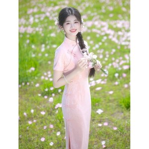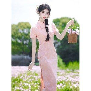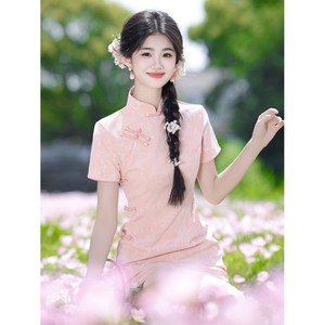 ピンクのチャイナドレス 2025 新しい夏の改良された若い女の子のハイエンドの新しい中国風のドレス新鮮な