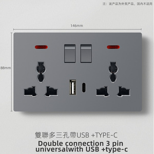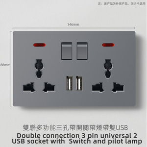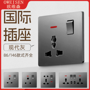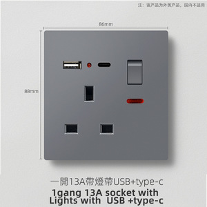 外国貿易英国標準つや消しグレースイッチソケット 1 オープン 13A 多機能 5 穴 USB ヨーロッパソケット 25A スイッチ
