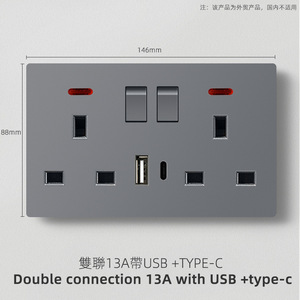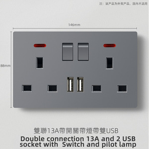 オープン 3 穴 13A+USB 1 つ