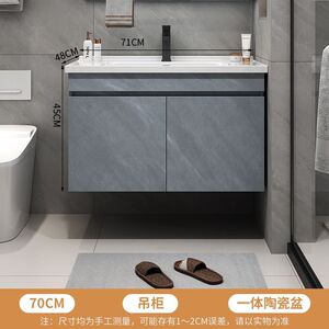吊柜70灰色-单独下体柜一体陶瓷盆