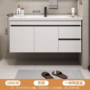 吊柜100灰色-单独下体柜一体陶瓷盆